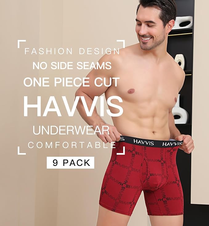 Imported HAVVIS Men's Boxer Briefs Soft Comfortable Bamboo Viscose Underwear for Men (Pack Of 9)